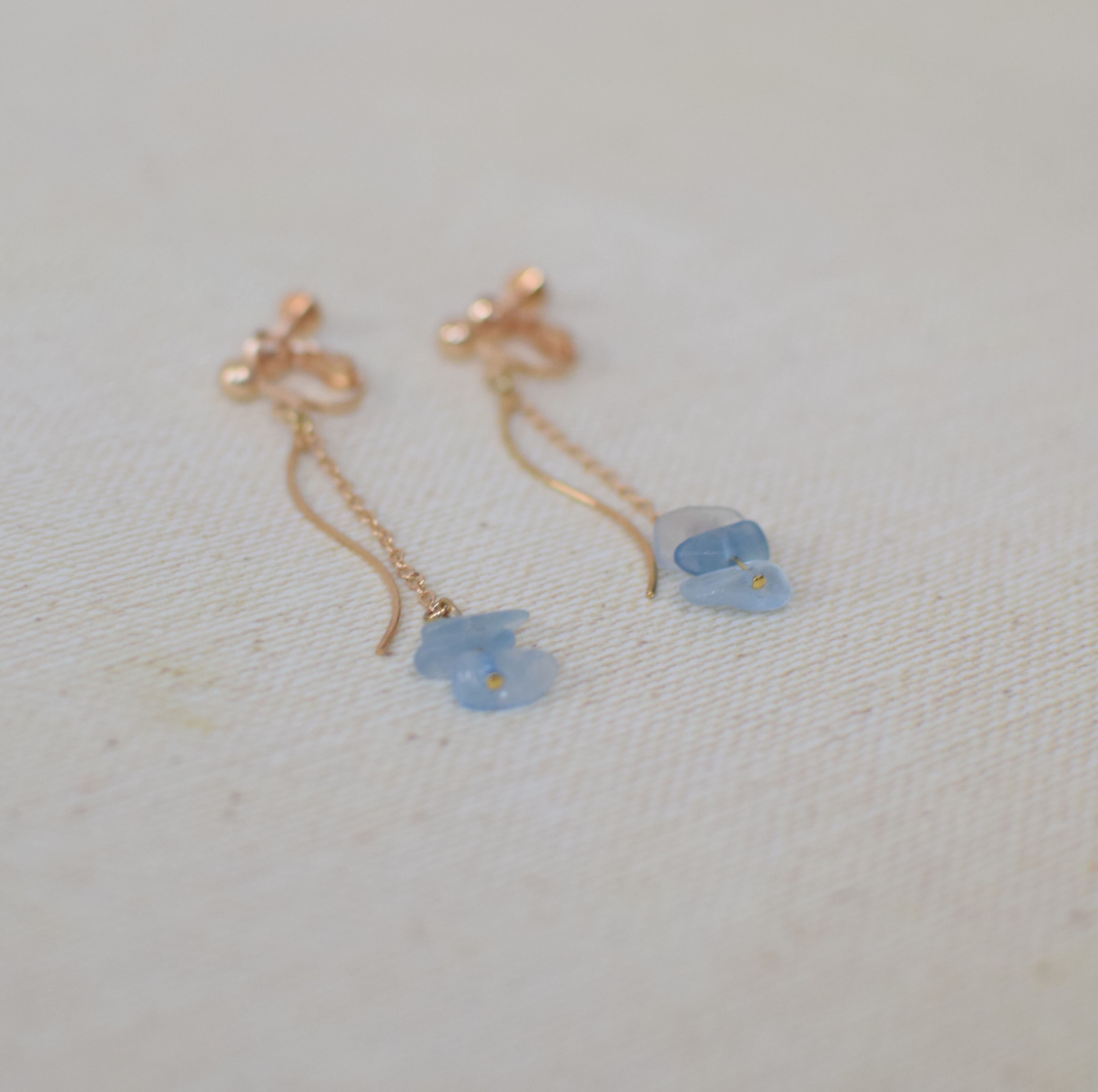 アクアマリンの澄んだブルーが、耳元で輝きを放ってくれます。