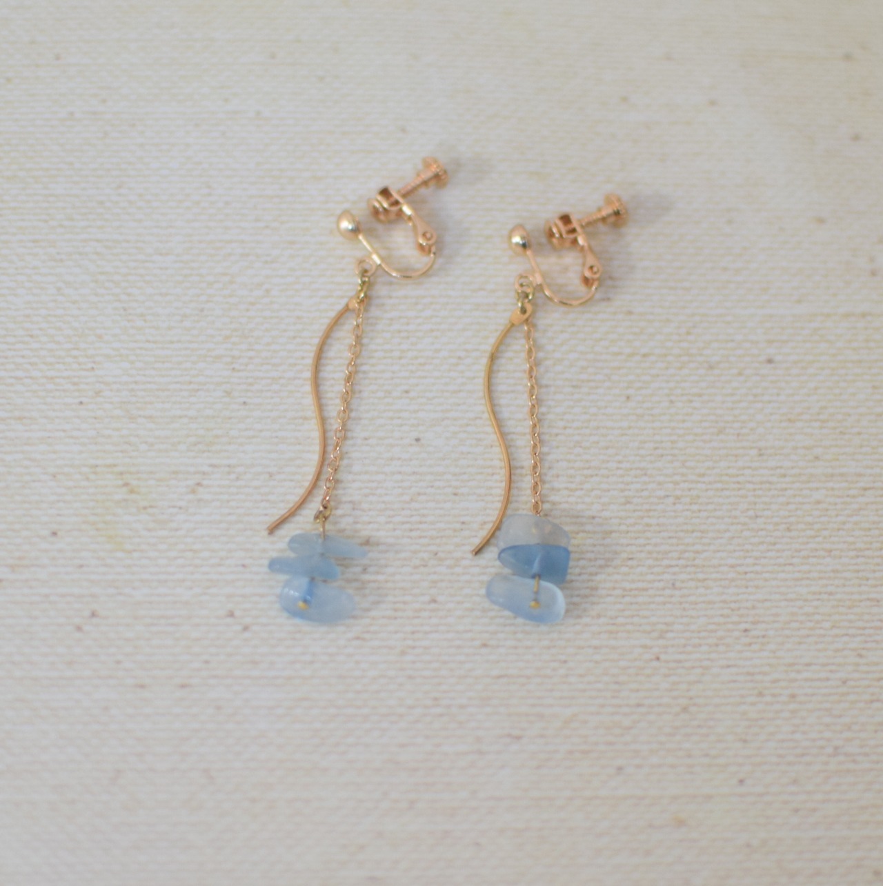 さざれ石のアクアマリンを使った、ウェーブ・イヤリングです。