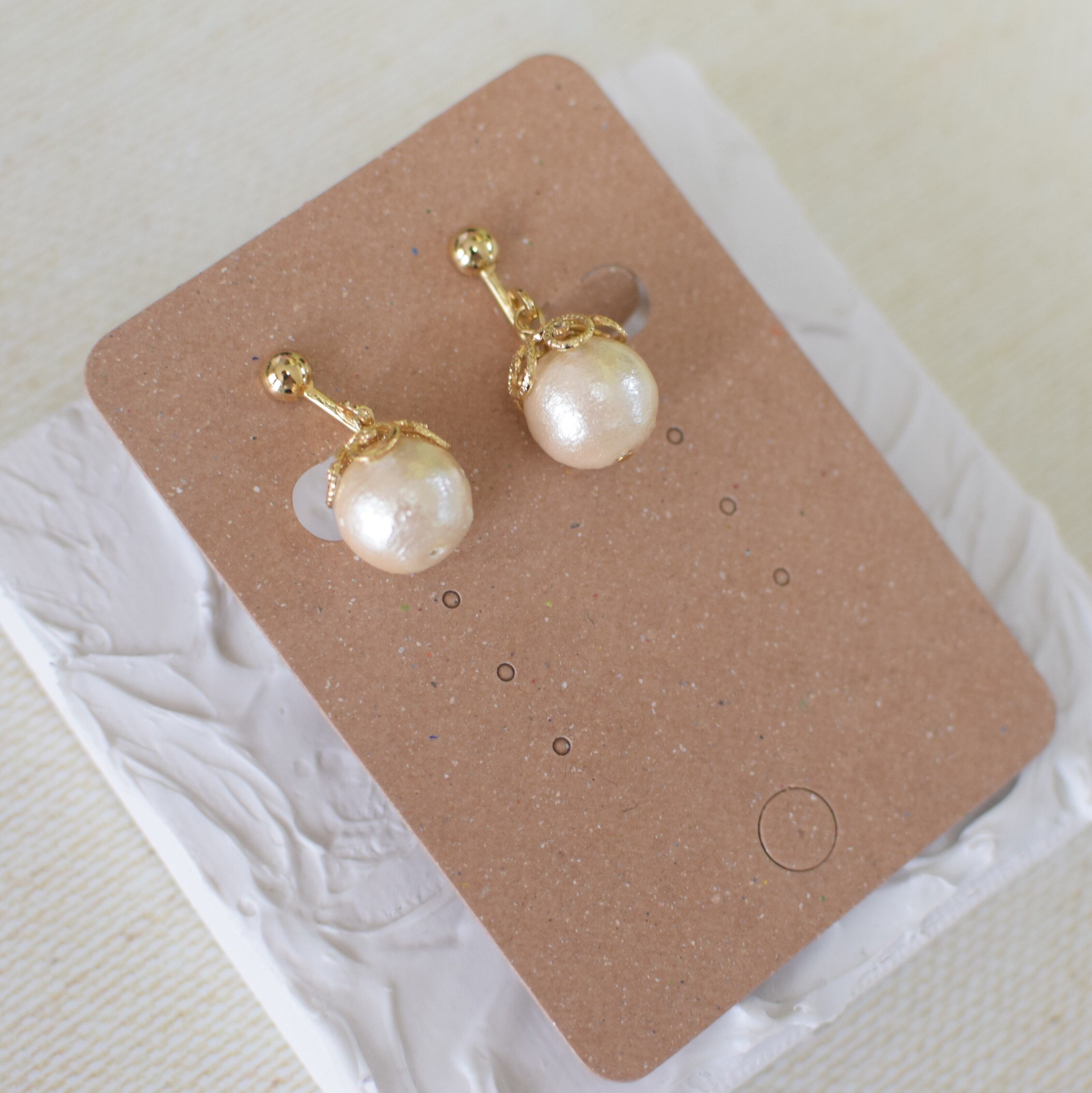 #コットンパール #イヤリング #キスカ #ハンドメイド #フラワーモチーフ #ゴールドカラー #ギフトラッピング #プレゼント #ネジばね式