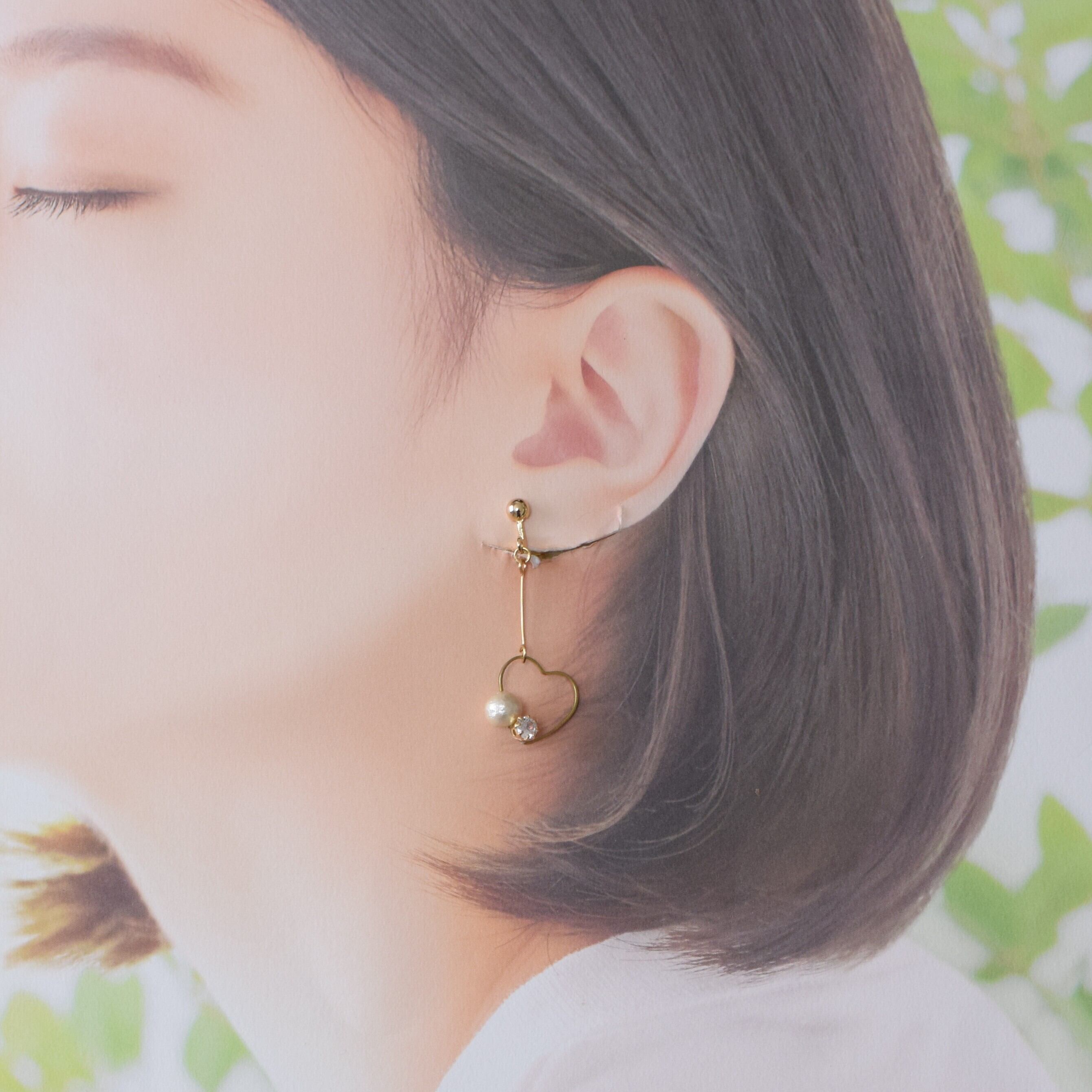 ぜひお出かけにワイヤーハートのイヤリングをお楽しみください。