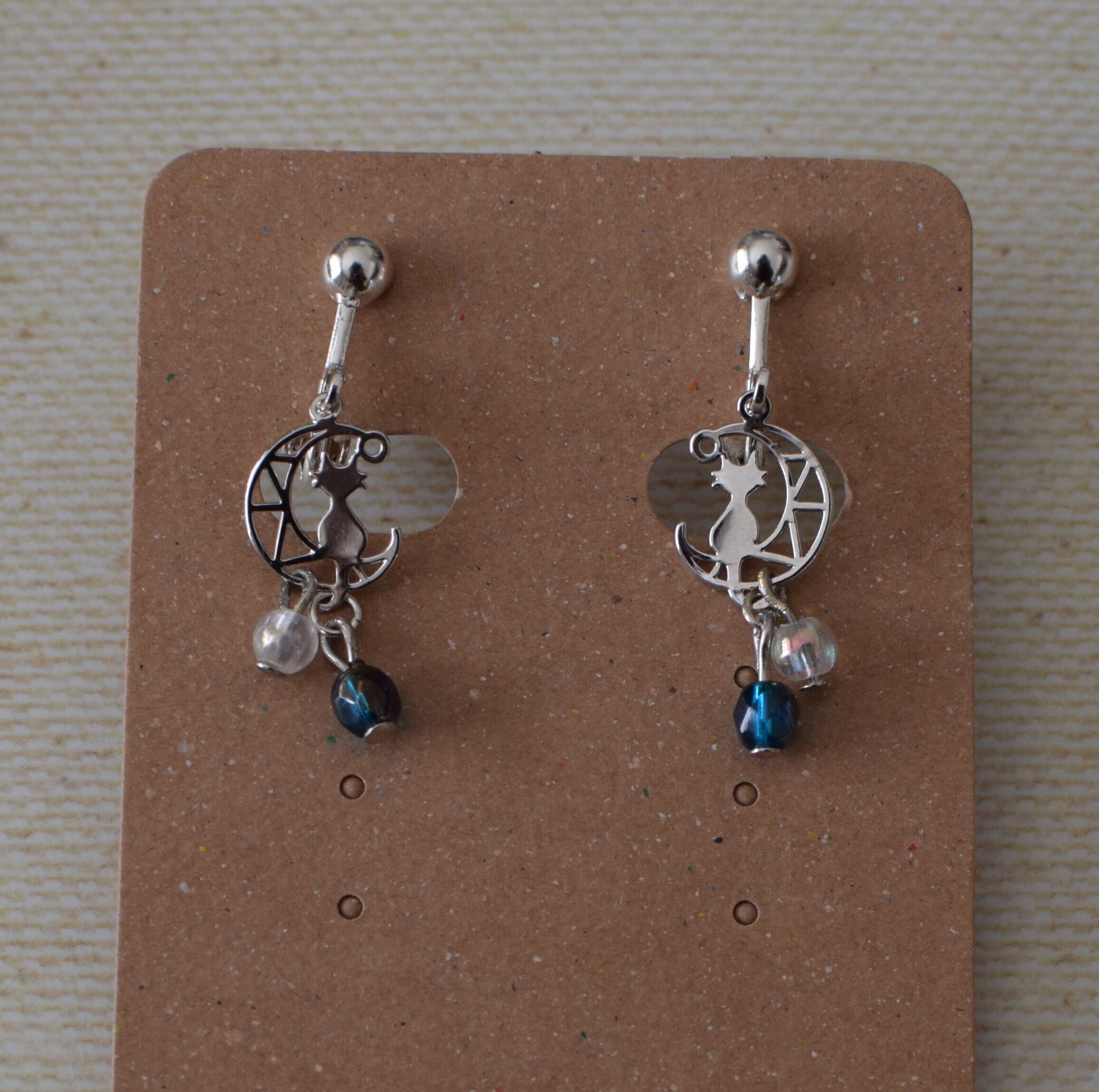 #猫 #サークル #シルバーカラー #ハンドメイド #イヤリング #ネジばね式 #チェコビーズ #ギフトラッピング