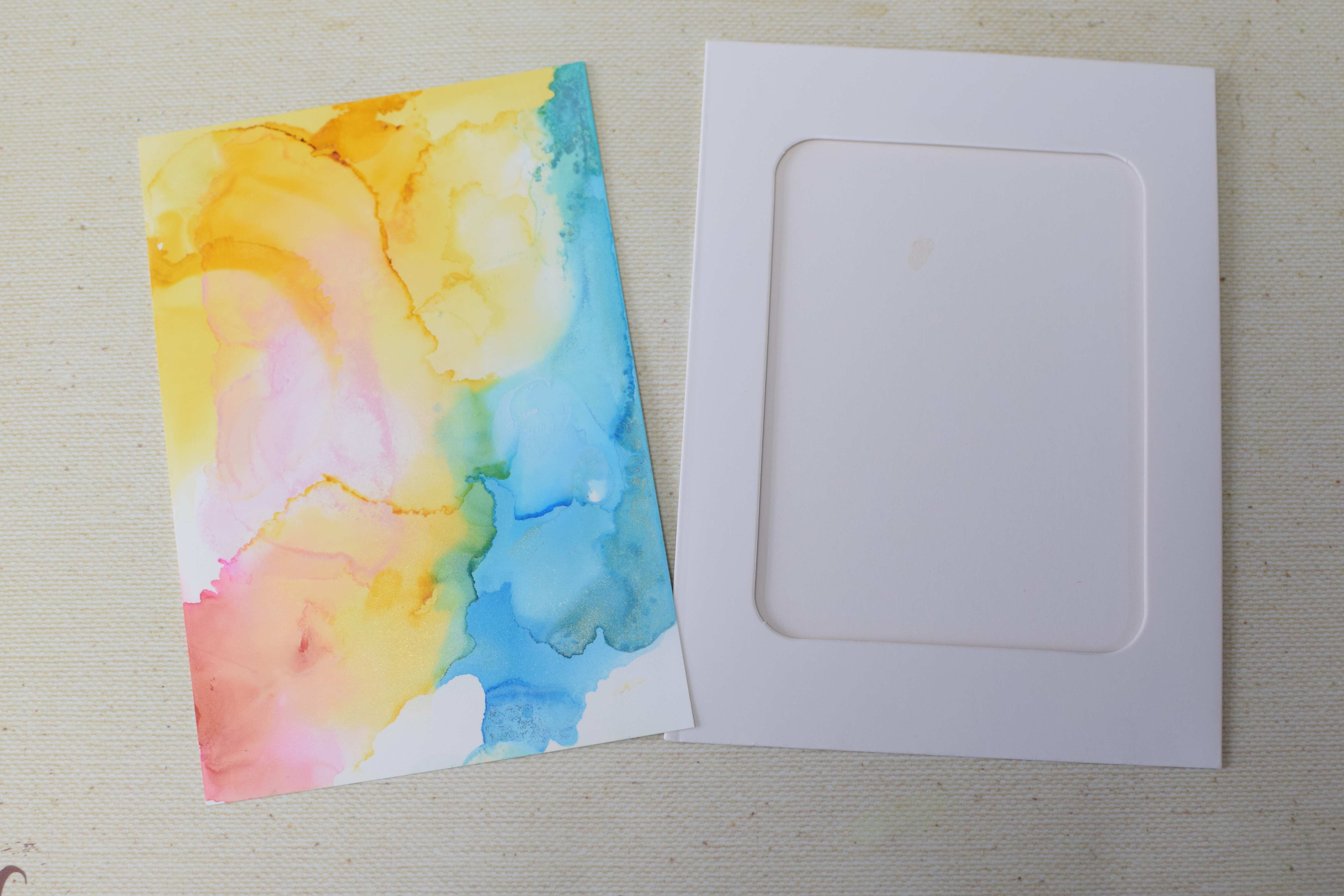 #アルコールインクアート #原画 #ハガキサイズ #ペーパーフレーム #イエロー #ピンク #メッセージカード
