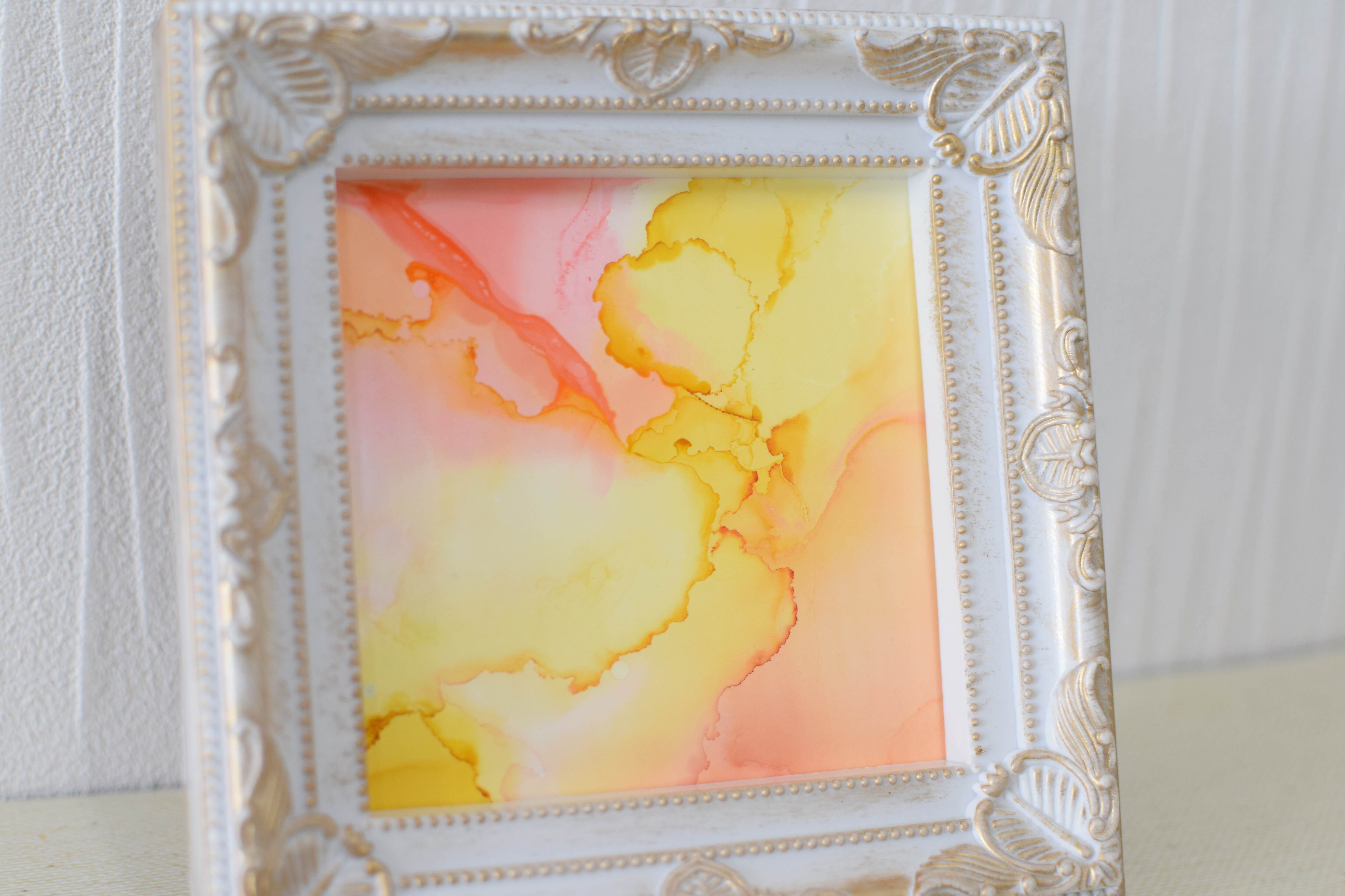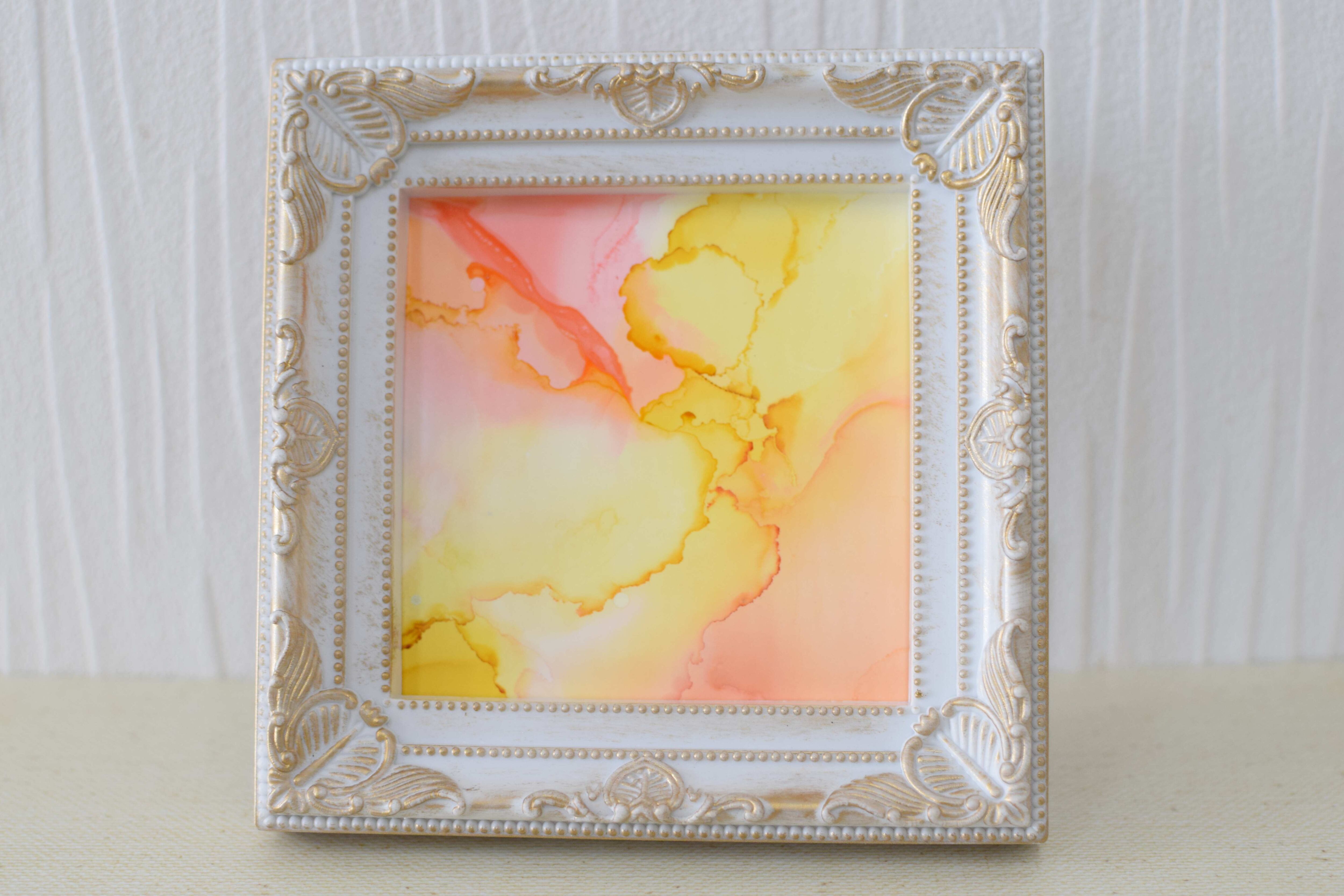 小ぶりなサイズのアートフレームで、インテリアにも飾りやすく、お花などと一緒にお飾りいただくのもおすすめです。