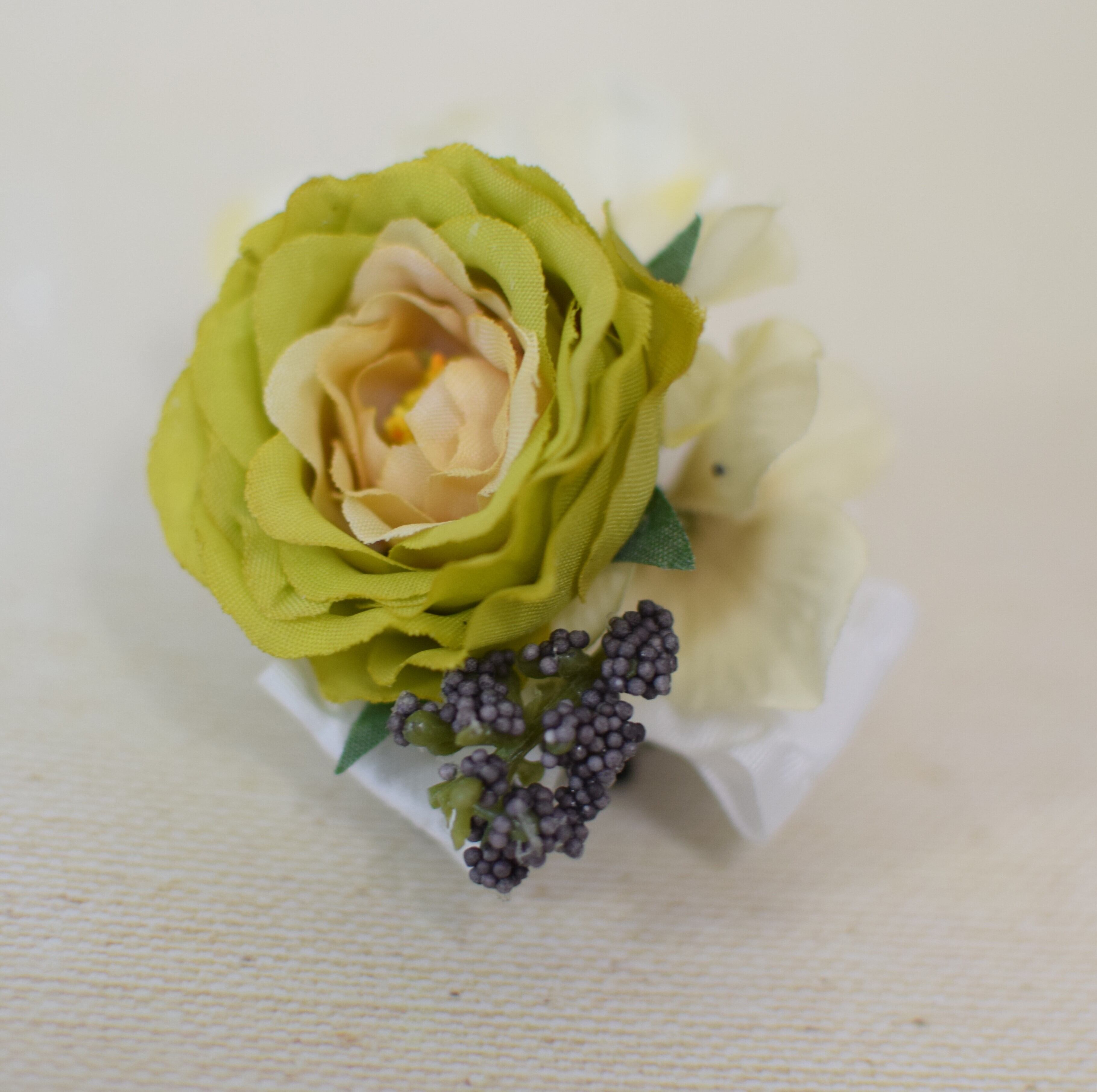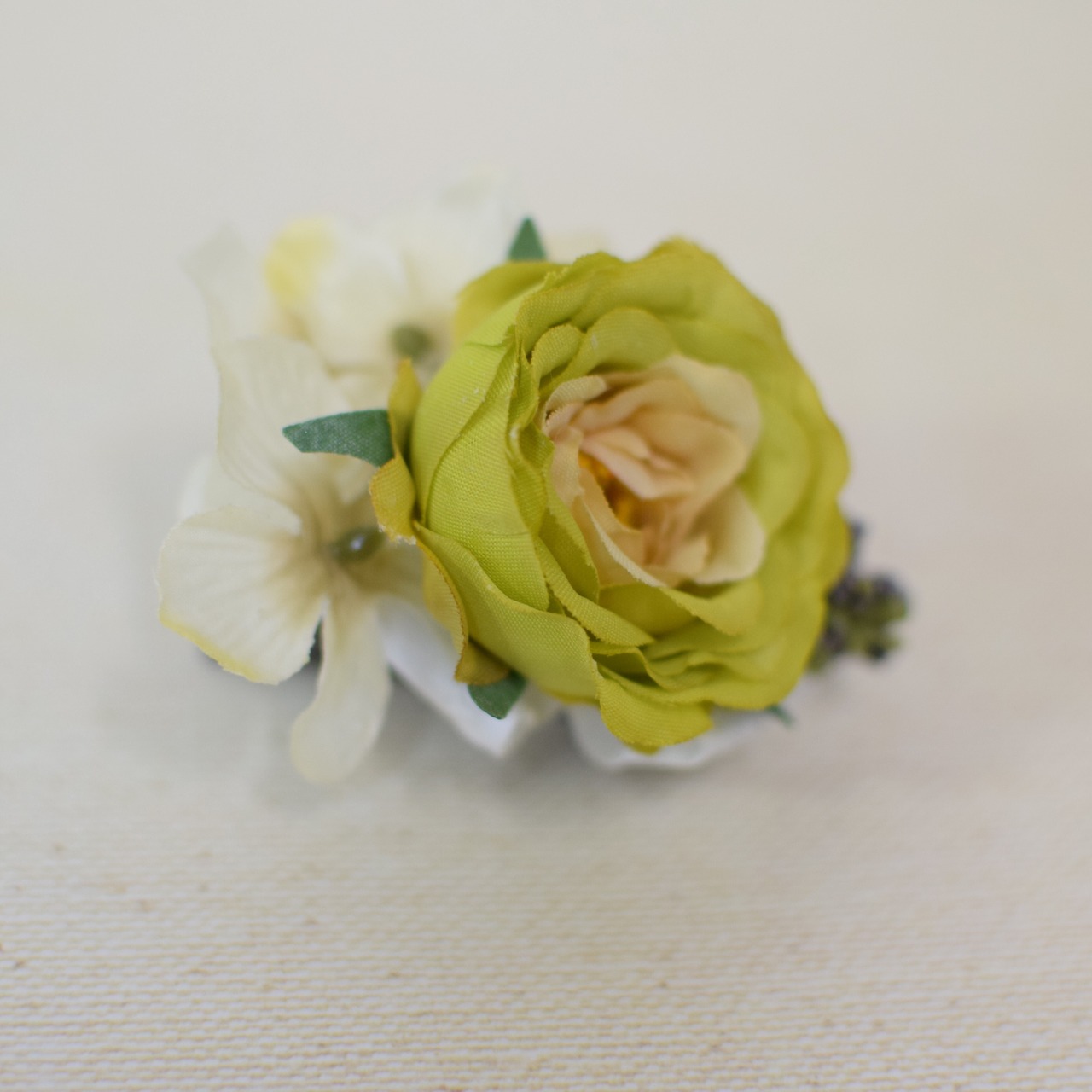 #コサージュ #薔薇 #グリーン #ヘアクリップ #花 #ブローチ #パーティ#和服 #着物 #髪飾り #まとめ髪 #ハンドメイド #秋