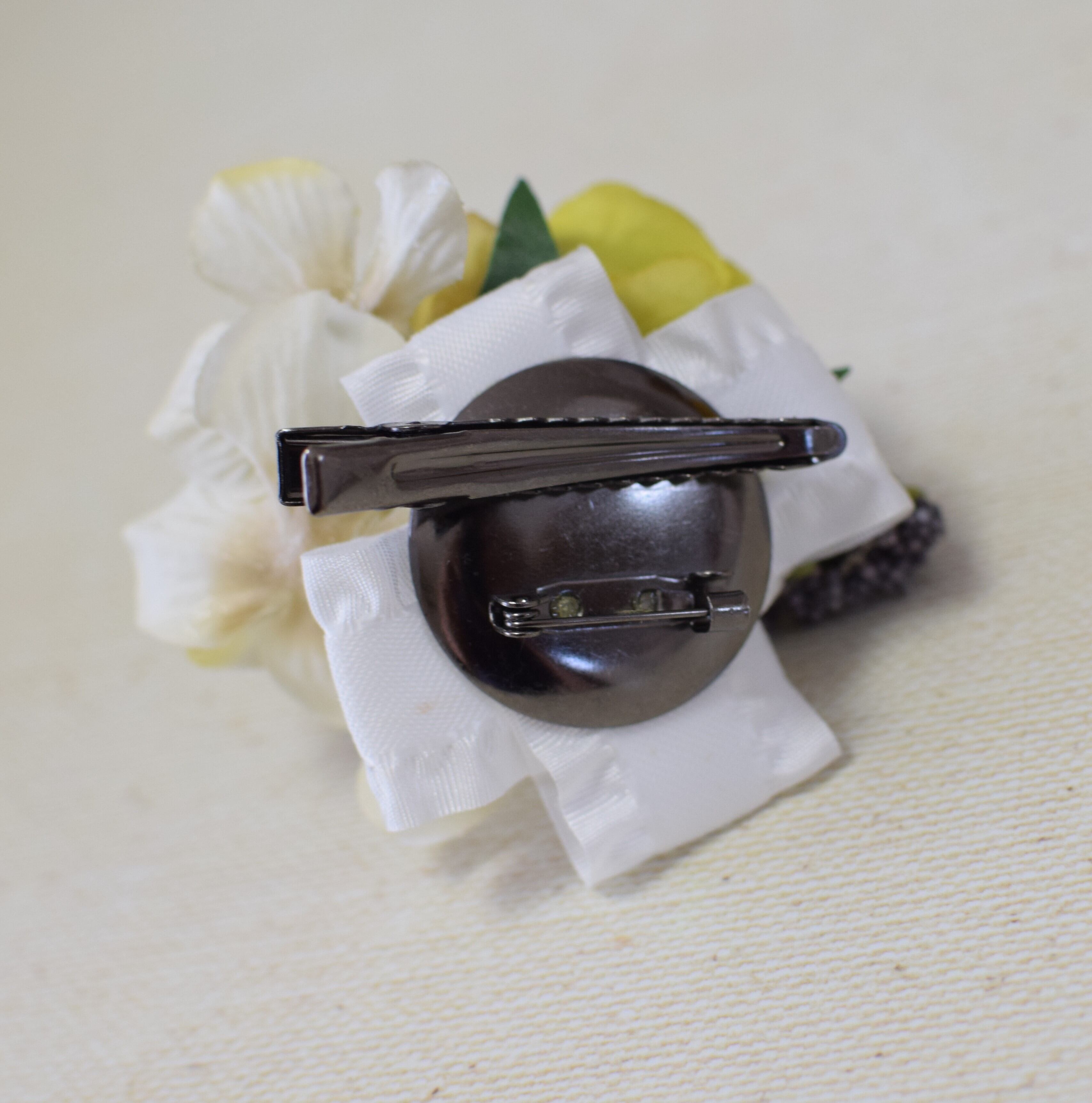 薔薇のコサージュ・ヘアクリップは、小さいサイズながらも華やかなアクセサリーとしておすすめです。季節感あふれる色の薔薇が、コサージュとしてはもちろんヘアクリップとしても使える2way仕様。ワンポイントでアレンジするだけで、コーディネートに華やかさをプラスしてくれること間違いなしです。小ぶりなサイズなので、日常使いからパーティーシーンまで幅広く活躍してくれるアイテムです。コサージュとしてお洋服につけても、ヘアクリップとして髪飾りとしても存在感を放つことでしょう。